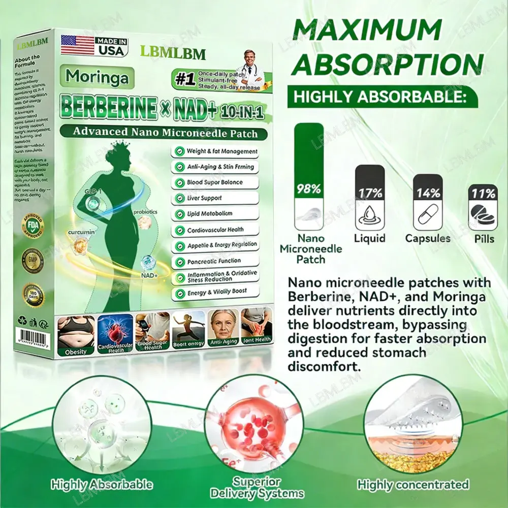 LBMLBMโข Moringaยท Berberine x NAD+ 10-in-1 Advanced Nano Microneedle Patch: 98% Absorption Rate, Transforming Weight, Liver, Gut & Skin Health