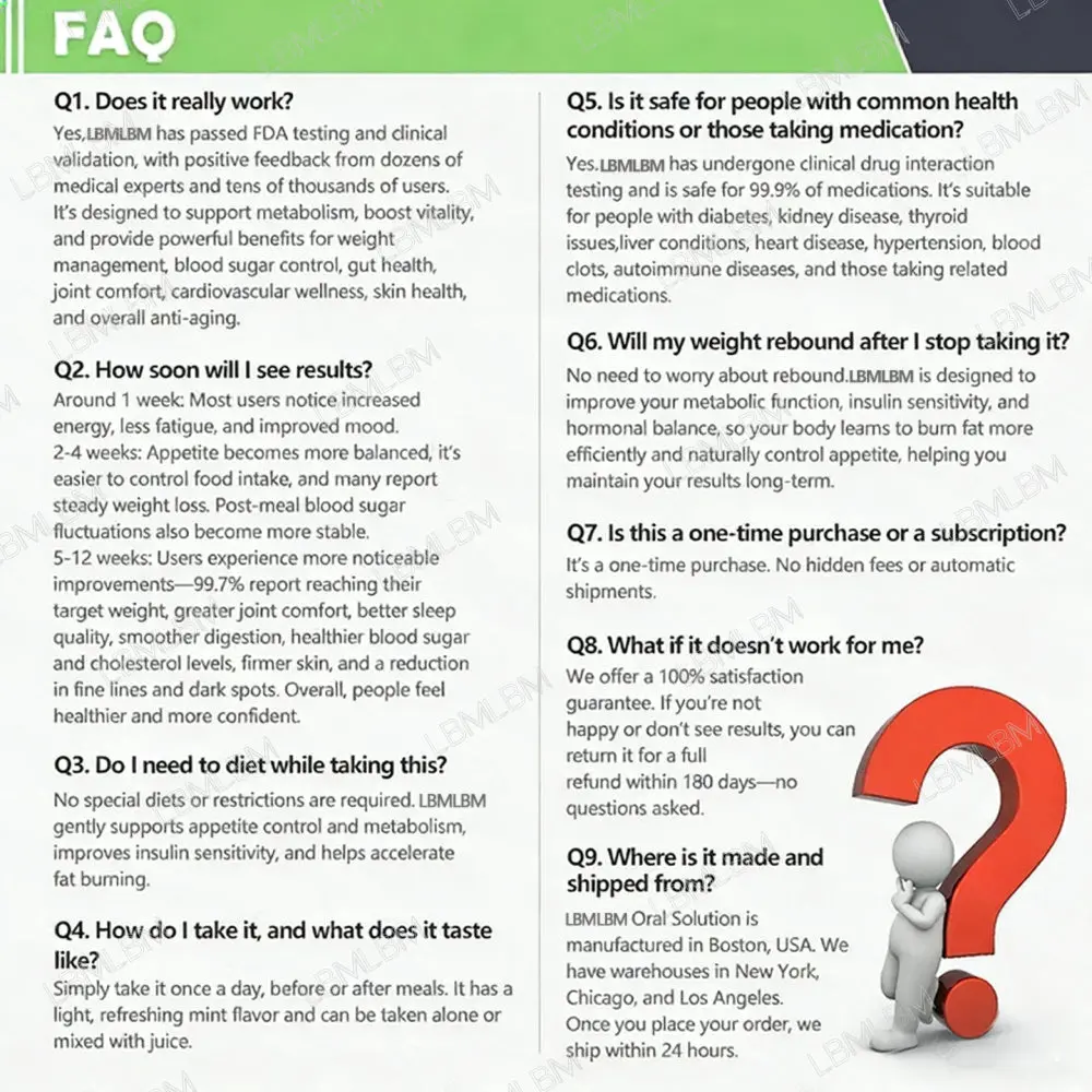 We are a top-tier endocrinology research team., and many of us have personally experienced obesity and its associated complications. Over the years, we have also evaluated commonly available weight-loss interventions on the market, including injectable therapies, capsules, and Oral weight-loss pills. However, their outcomes were often limited, and many were accompanied by tolerability concerns. These experiences motivated us to develop a safer, more natural, and more effective approach to metabolic health and weight management. After more than 12 years of research, our team initiated self-testing of this program, successfully overcoming the limitations of traditional single-pathway interventions that frequently cause gastrointestinal side effects. By adopting a dual-pathway strategyโsupporting appetite regulation and fat metabolism while also addressing post-weight-loss skin firmnessโwe observed significant improvements in body weight and metabolic health, without rebound weight gain or adverse reactions. Subsequently, we conducted large-scale studies and clinical trials involving more than 5,000 participants, further validating the performance of LBMLBMโข๐๐จ๐ซ๐ข๐ง๐ ๐ ยท ๐๐๐ซ๐๐๐ซ๐ข๐ง๐ ร ๐๐๐+ 10-๐ข๐ง-๐ ๐๐๐ฏ๐๐ง๐๐๐ ๐๐๐ง๐จ ๐๐ข๐๐ซ๐จ๐ง๐๐๐๐ฅ๐ ๐๐๐ญ๐๐ก in metabolic regulation, appetite control, and overall health outcomes. These benefits were particularly pronounced among overweight or obese adults over the age of 40. Supported by contemporary medical research, LBMLBMโข๐๐จ๐ซ๐ข๐ง๐ ๐ ยท ๐๐๐ซ๐๐๐ซ๐ข๐ง๐ ร ๐๐๐+ 10-๐ข๐ง-๐ ๐๐๐ฏ๐๐ง๐๐๐ ๐๐๐ง๐จ ๐๐ข๐๐ซ๐จ๐ง๐๐๐๐ฅ๐ ๐๐๐ญ๐๐ก has undergone rigorous FDA regulatory review and evaluation, with its safety, effectiveness, and compliance formally recognized. This formulation represents a scientific advancement beyond conventional weight-loss products that are often associated with significant gastrointestinal burden, offering a natural, safe, and effective option for individuals seeking comprehensive metabolic support and sustainable long-term weight management.โ